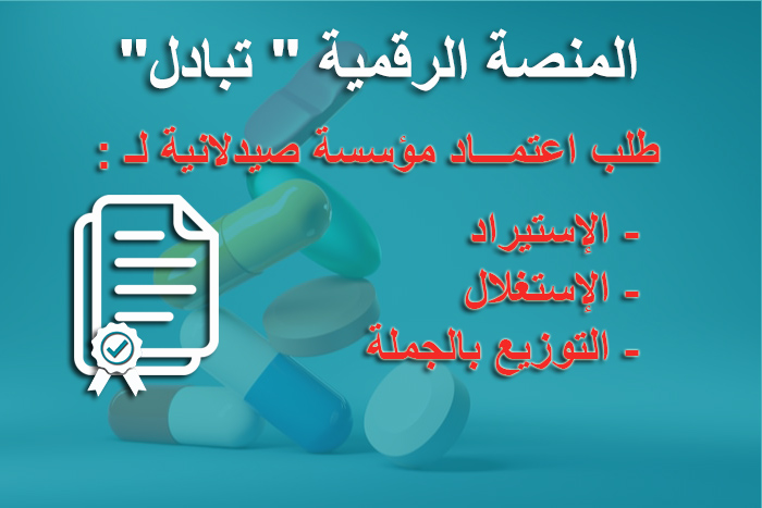 آلية رقمية تتيح للمؤسسات الصيدلانية، للاستيراد، الاستغلال والتوزيع بالجملة للمواد الصيدلانية والمستلزمات الطبية بتقديم طلبات الاعتماد الخاصة بهم عبر الإنترنت.