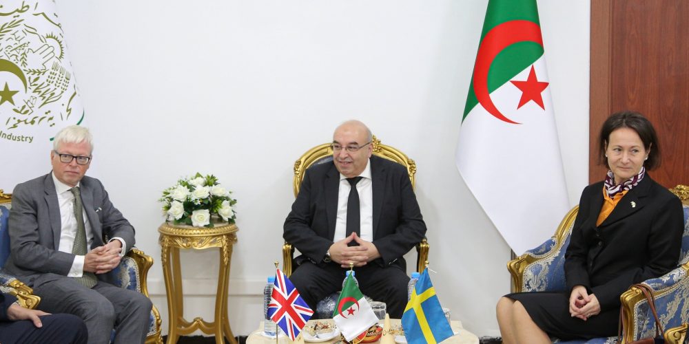 2026/01/13 وزير الصناعة الصيدلانية الدكتور وسيم قويدري يستقبل بمقر الوزارة كلاً من سعادة سفيرة مملكة السويد بالجزائر، السيدة آنا بلوك مازوييه ، Anna Block Mazoyer) ) ، و سعادة سفير المملكة المتحدة لبريطانيا العظمى وإيرلندا الشمالية بالجزائر، السيد جيمس روبرت ستيفان داونر (James Robert Stephen Downer)، بحضور المدير العام لمخبر استرا زينيكا الجزائر، و المدير الجهوي لإفريقيا و المغرب العربي لنفس المخبر .