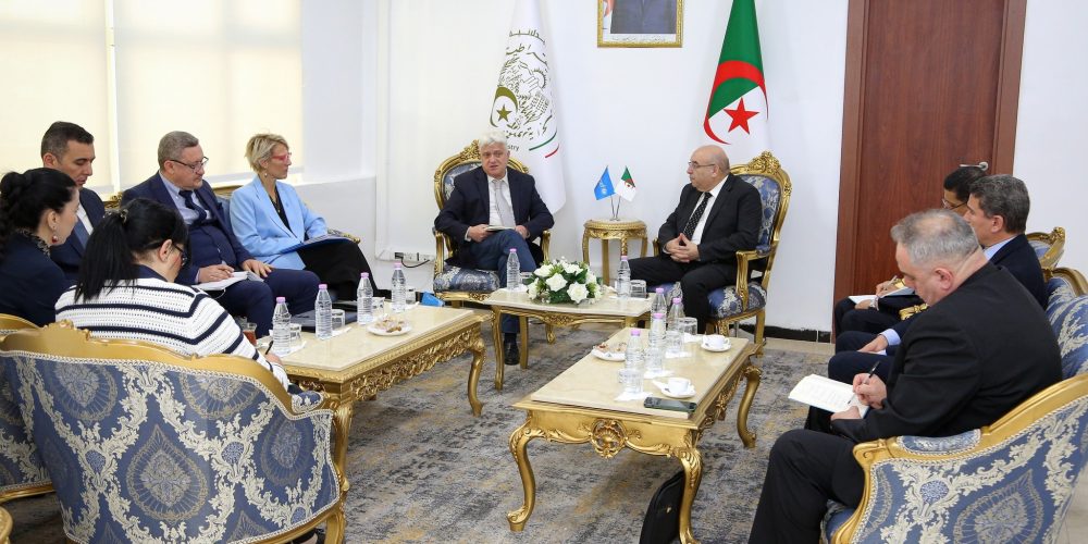 2026/04/015: إستقبل وزير الصناعة الصيدلانية السيد وسيم قويدري بمقر الوزارة المدير الإقليمي لمنطقة الشرق الأوسط وشمال أفريقيا لمنظمة الأمم المتحدة للطفولة (اليونيسف) السيد إدوارد فويسلاف بيجبيدير Beigbeder Édouard، بحضور ممثلة مكتب اليونيسف بالجزائر، السيدة كاترينا جوهانسون، والوفد المرافق لهما، .