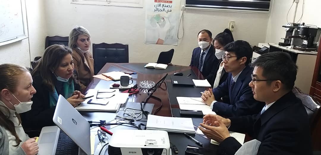 ترأس السيد قاو برفقة السيد كفين زهانغ Zhang Kevin مدير الشؤون الدولية بسينوفاك اجتماع عمل مع الرئيسة المديرة العامّة لمجمّع صيدال السيدة فطوم أقاسم، خصّص لدراسة مدى تقدّم الشراكة فيما يخص إنتاج كورونافاك بالجزائر، بالاضافة إلى التنسيق فيما يخص عملية التصديق من طرف المنظّمة العالمية للصّحة.