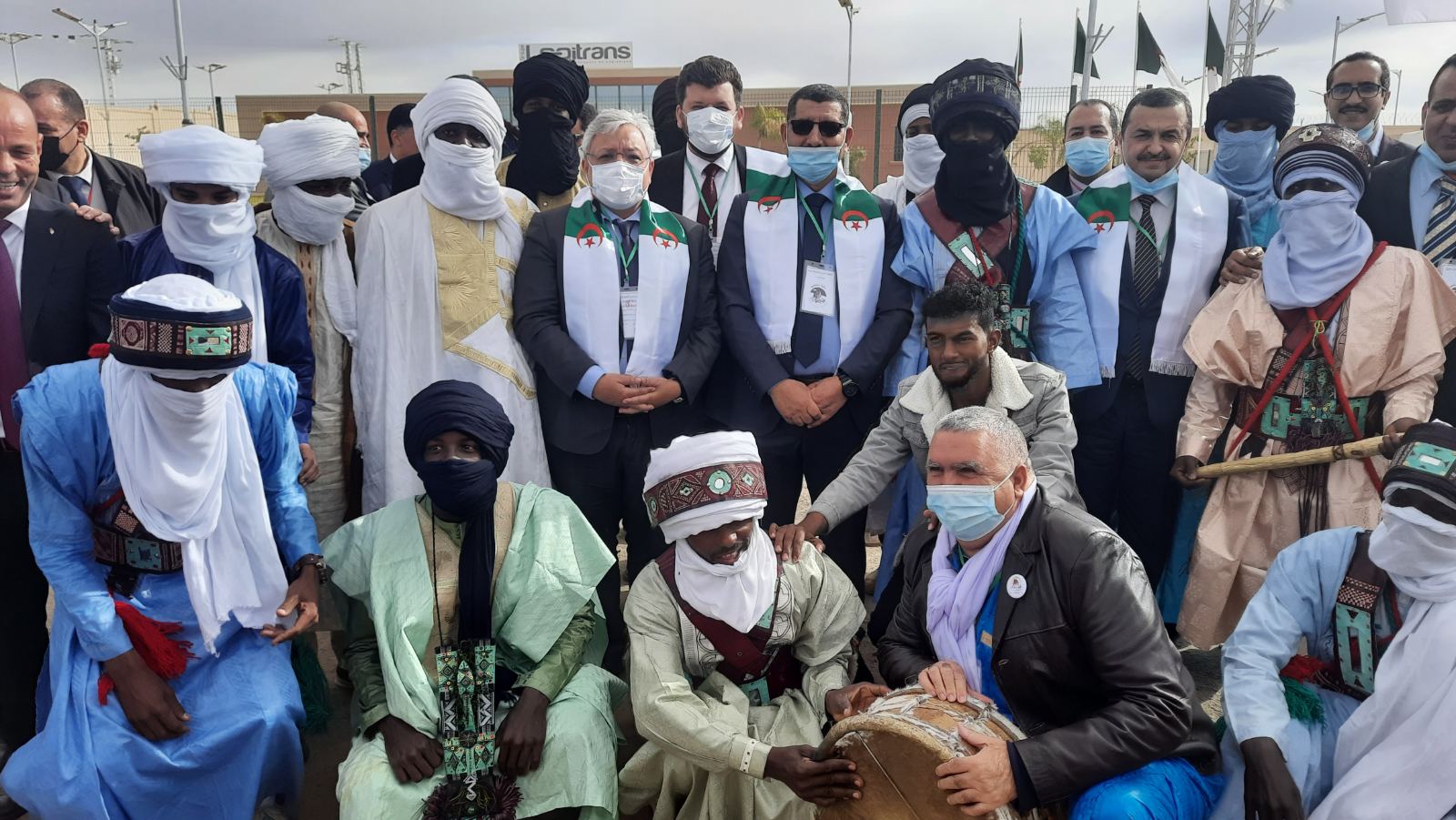 شارك اليوم الأحد 26 ديسمبر 2021 السيد وزير الصناعة الصيدلانية الدكتور عبد الرحمان جمال لطفي بن باحمد بدعوة من السيد وزير التجارة و ترقية الصادرات الأستاذ كمال رزيق، رفقة وفد وزاري هام وعدد من السفراء والسلطات المحلية بولاية تمنراست في مراسيم افتتاح الطبعة الخامسة والثلاثون 35 لمعرض الأسهار  تحت رعاية رئيس الجمهورية عبد المجيد تبون  وبعنوان ” تمنراست بوابة السوق الإفريقية”.