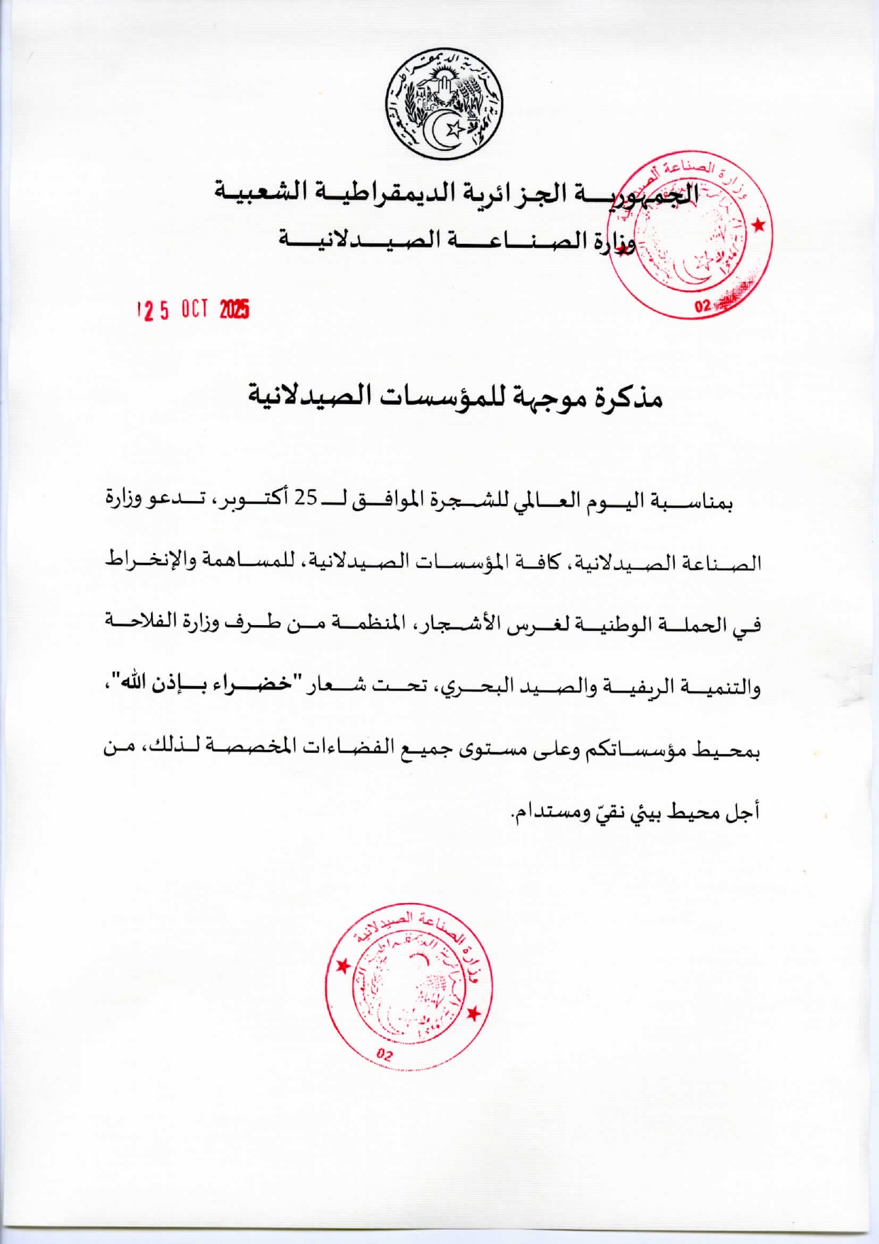 مذكرة موجهة للمؤسسات الصيدلانية