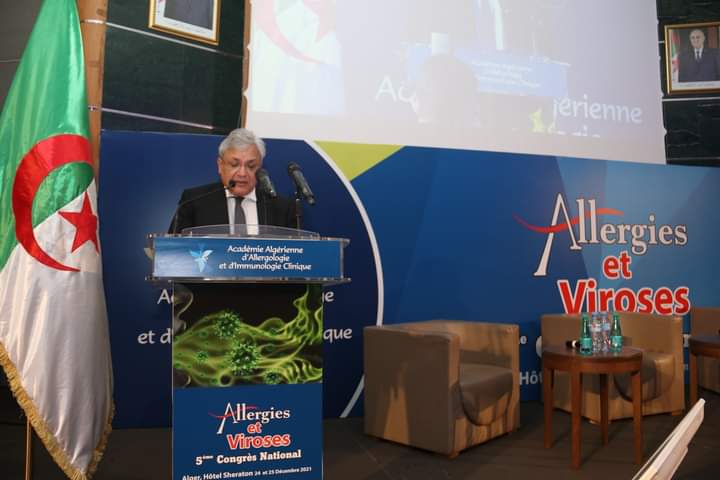 أشرف اليوم 24 ديسمبر 2021 السيد وزير الصناعة الصيدلانية الدكتور عبد الرحمان جمال لطفي بن باحمد على إفتتاح أشغال المؤتمرالخامس الذي نظّمته الأكاديمية الجزائرية لعلوم أمراض الحساسية والمناعة العيادية حول علم الحساسية والمناعة العيادية.