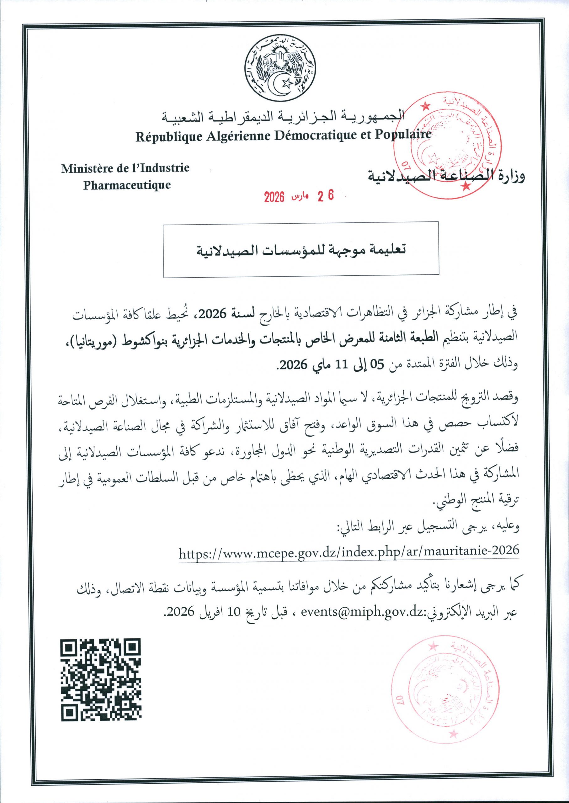 البريد الالكتروني الخاص بتاكيد المشاركة: events@miph.gov.dz