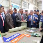 كما أعطى إشارة انطلاق الدفعة الاولية من منتوجات الشركة المقدرة بحوالي 10 كم والموجهة الى دكار سينيغالية لاستعمالها في قنوات الصرف الصحي.