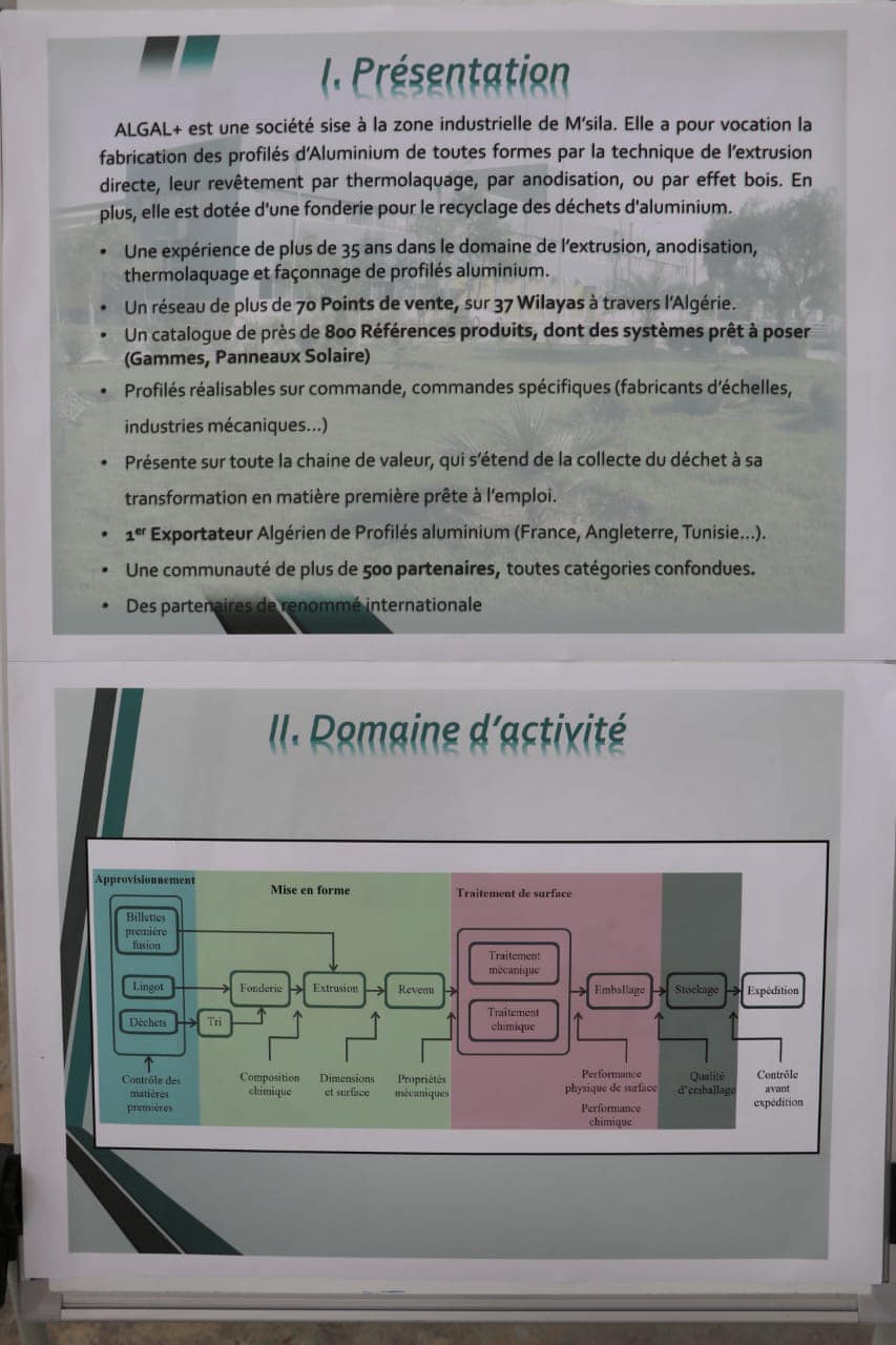 وعاين السيد الوزير أيضا، وحدة تحويل الألمنيوم لشركة “ألقال بلوس”، ثمرة شراكة جزائرية-أردنية، المختصة في توفير كل منتجات الألمنيوم لتوفر المصنع على تجهيزات تسمح له بذلك ومنها الأبواب، النوافذ، الجدران…إلخ. وتقدر الطاقة الإنتاجية السنوية لهذه الوحدة ب 6.000 طن.
