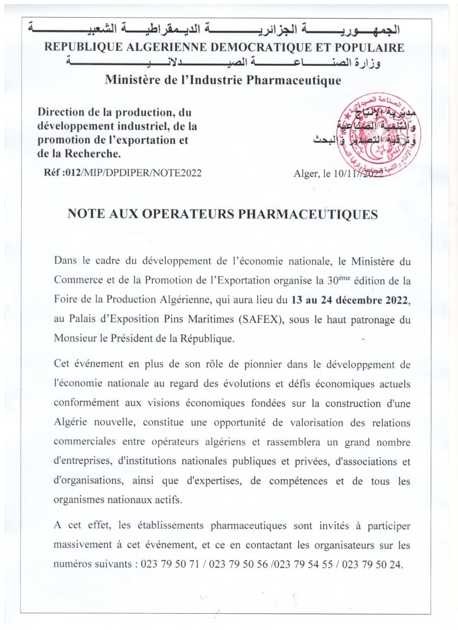Au service du secteur de l'industrie pharmaceutique en Algérie