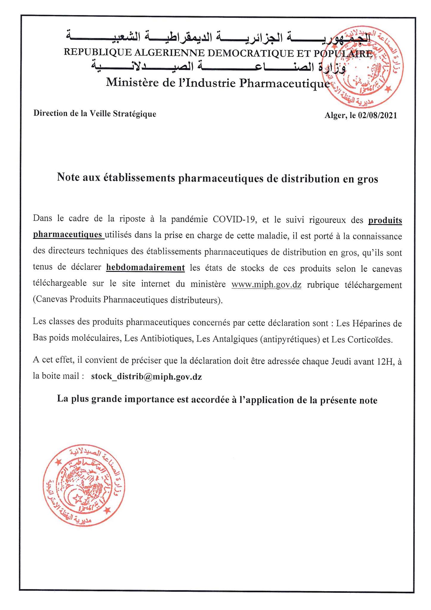 Déclaration des stocks des produits pharmaceutiques-distribution de gros