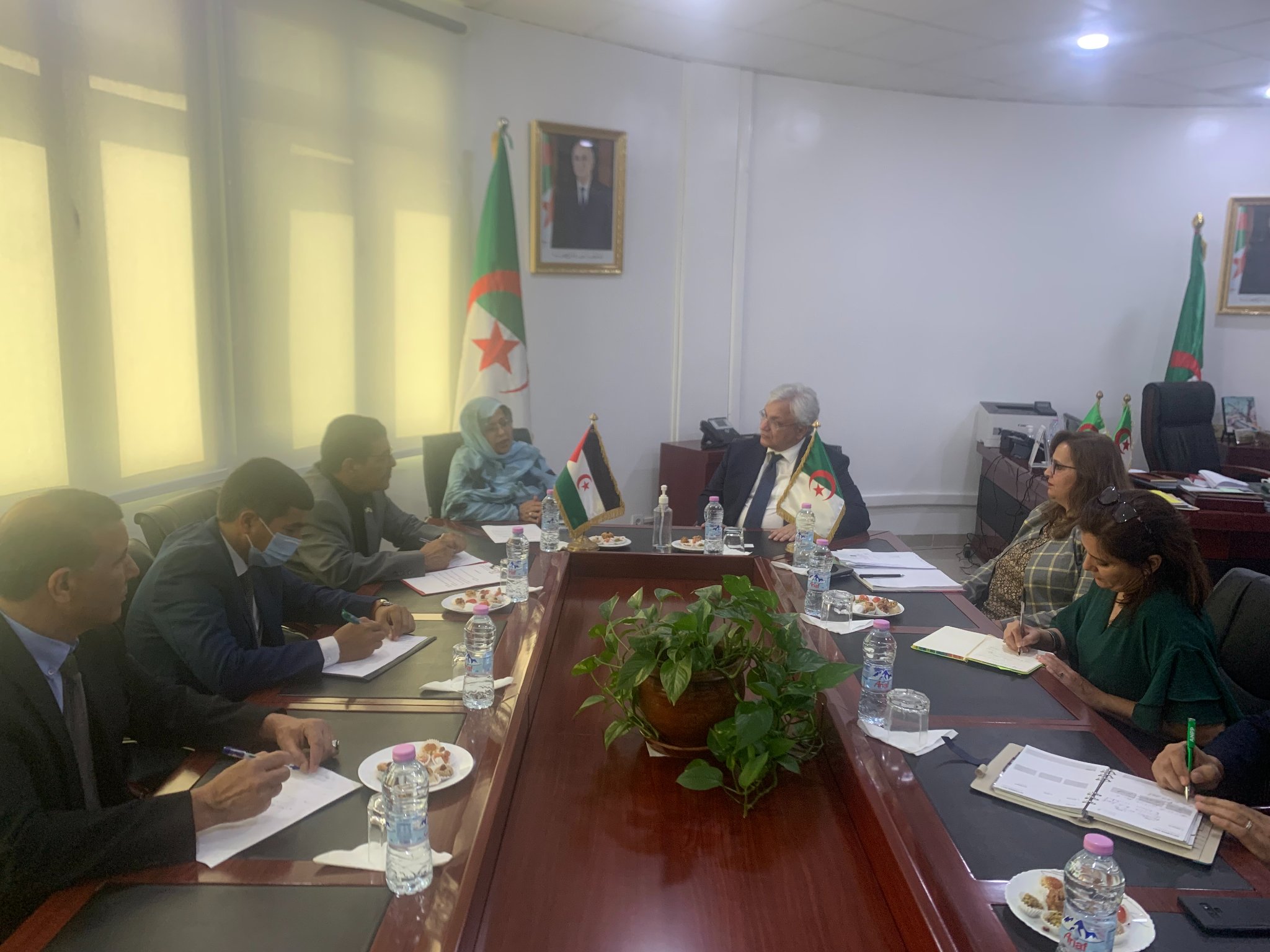 Dans le cadre du développement de la coopération et du renforcement du partenariat bilatérale Algéro-Sahraoui , le Ministre de l’Industrie Pharmaceutique le Dr Abderrahmane Djamel Lofti Benbahmed a reçu en audience, ce Mardi 07 juin 2022, Mme Kheira Bellaha Ministre de la Santé Publique de la République Sahraouie.