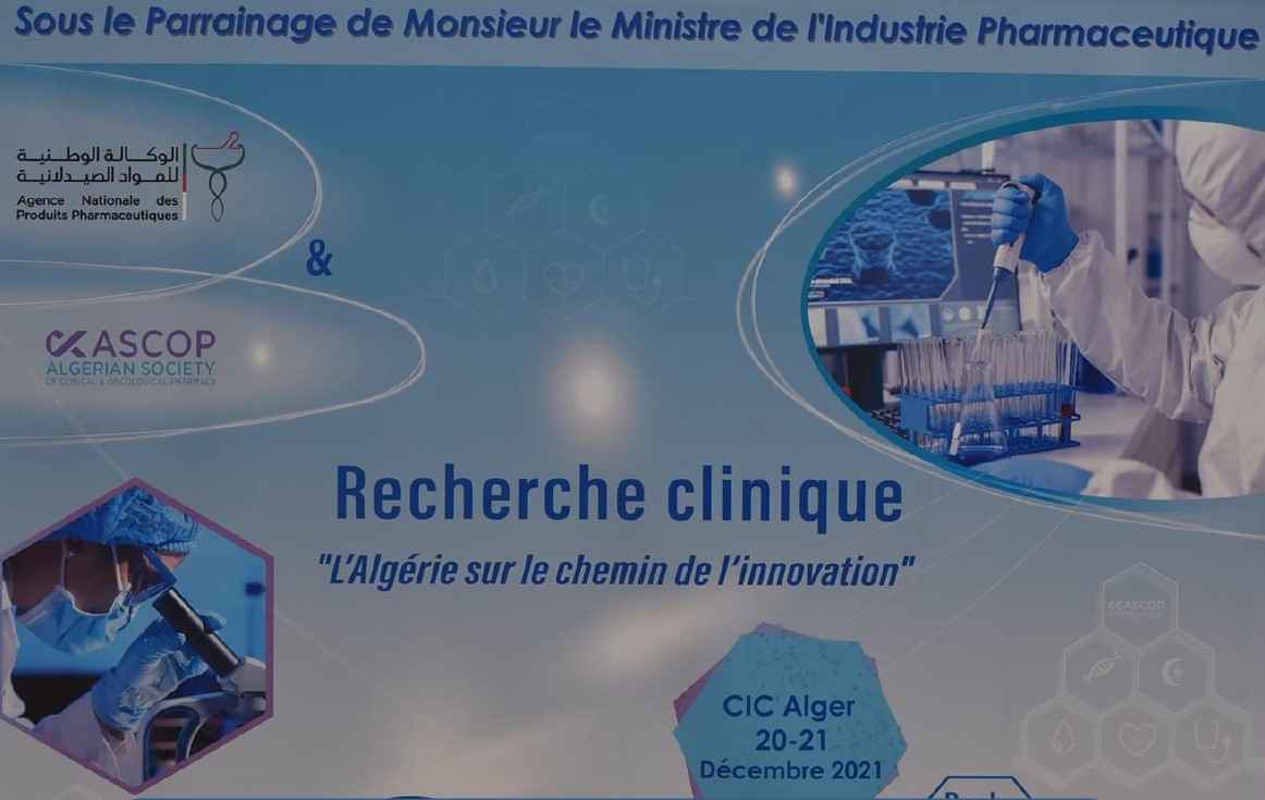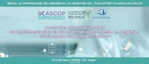 journées internationales  sur « l’implémentation de la pharmaco-économie en Algérie: Challenges et perspectives », organisée par l’Agence Nationale des Produits Pharmaceutique et la Société Algérienne de Pharmacie clinique et oncologique ASCOP au Centre International des Conférences Abdelatif Rahel. Samedi le 19 Mars 2022
