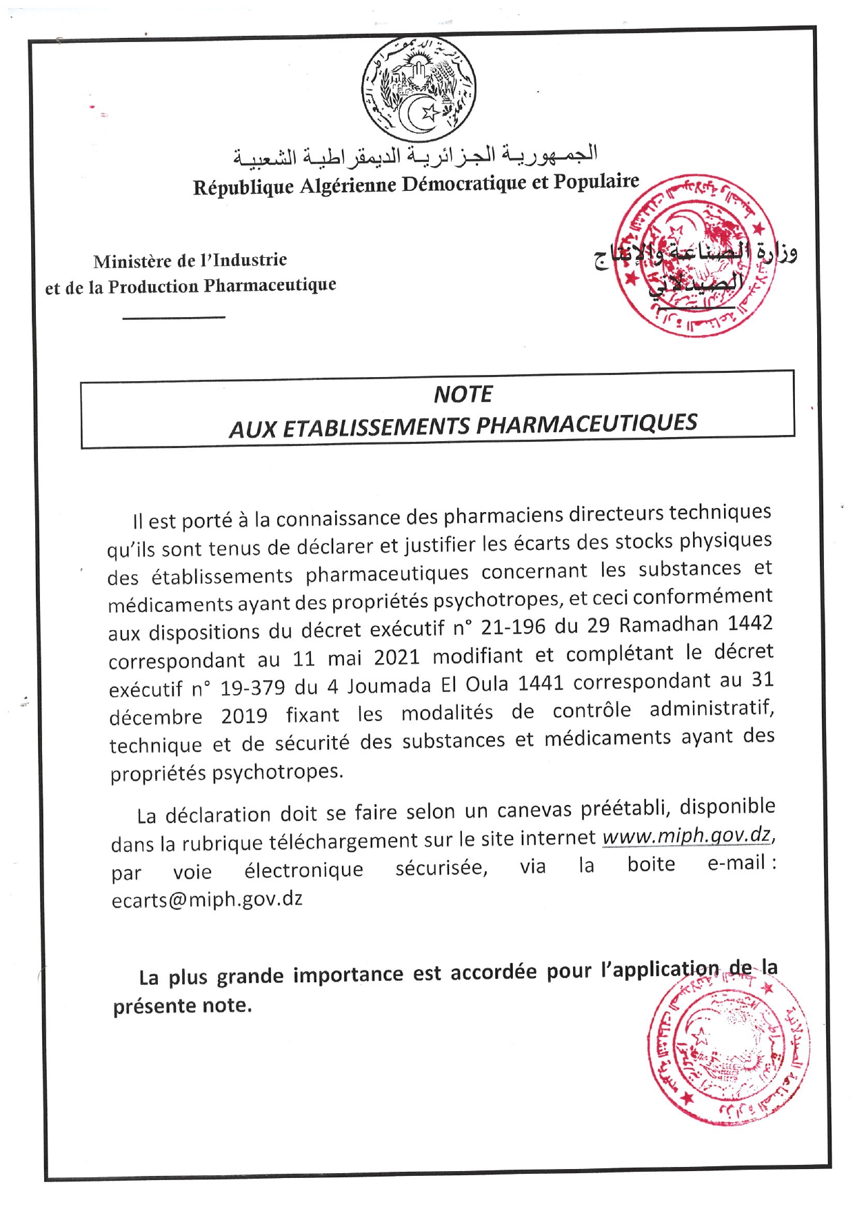NOTE AUX OPÉRATEURS PHARMACEUTIQUES – Forum des hommes d’affaires Algéro-Jordanien