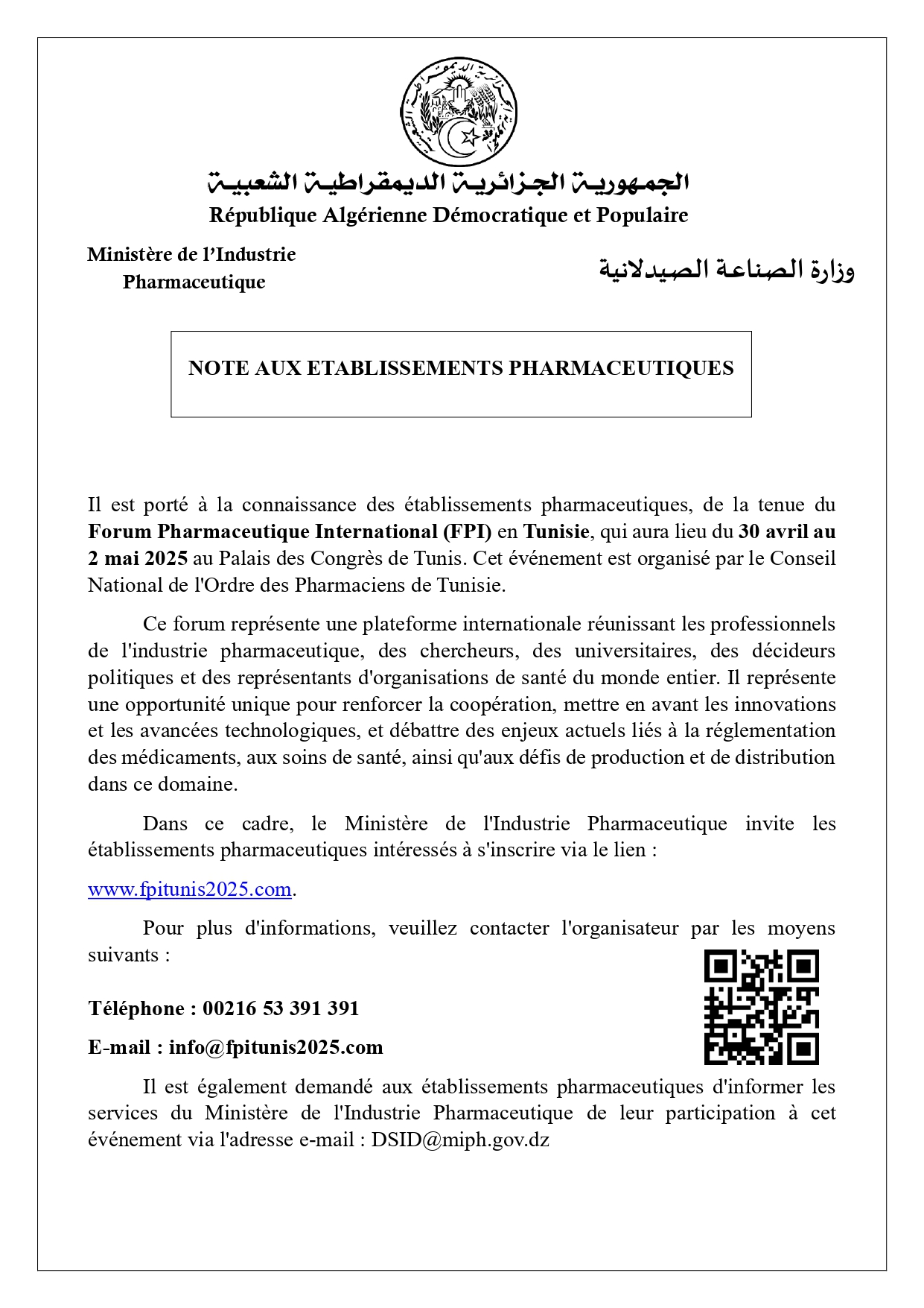 note aux établissements pharmaceutiques de Fabrication et d’Importation
