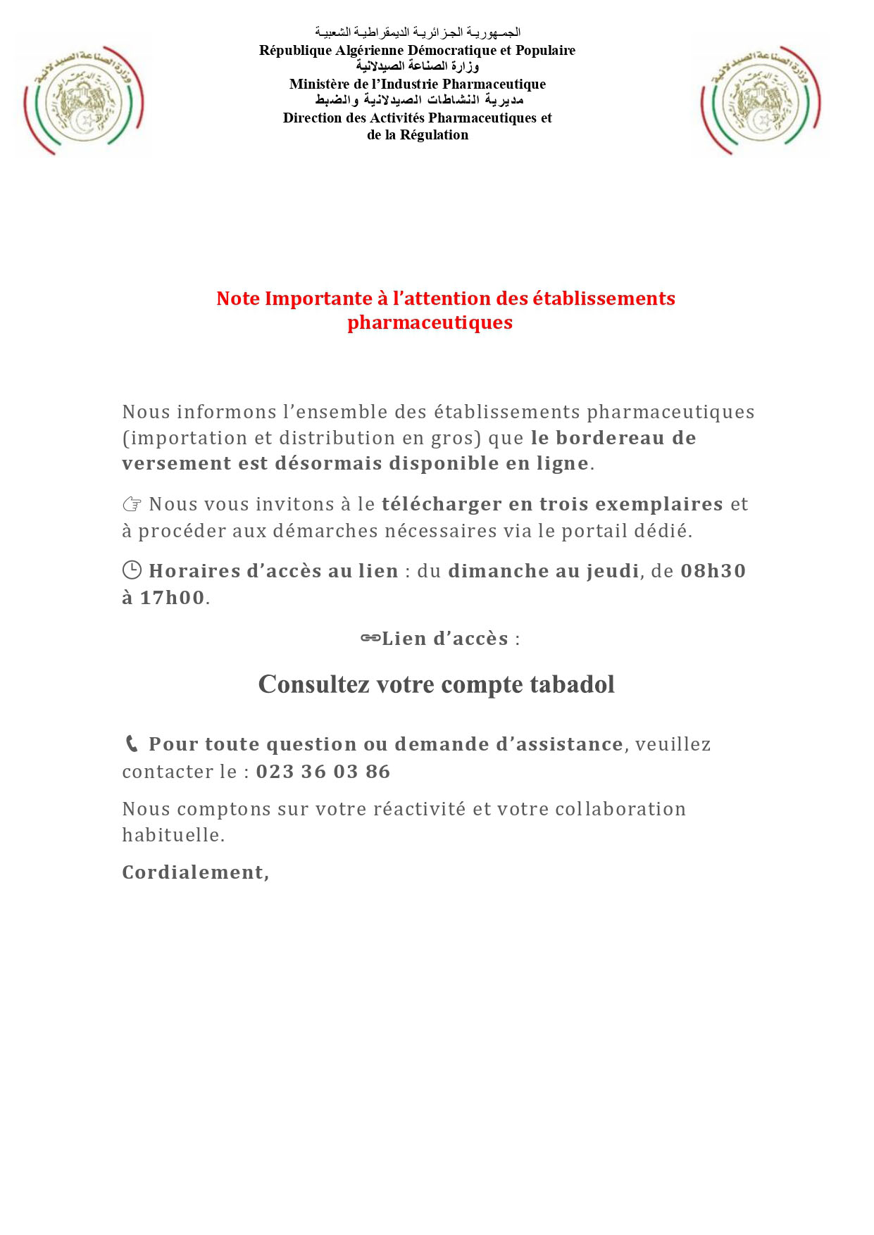 note aux établissements pharmaceutiques d’importation et de distribution en gros