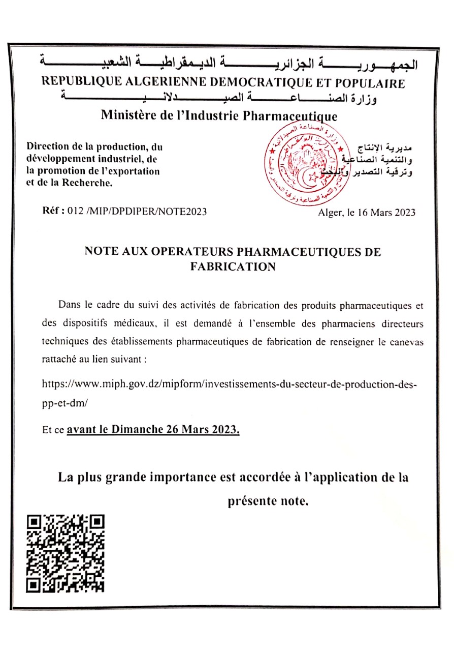 • Note aux opérateurs pharmaceutiques
