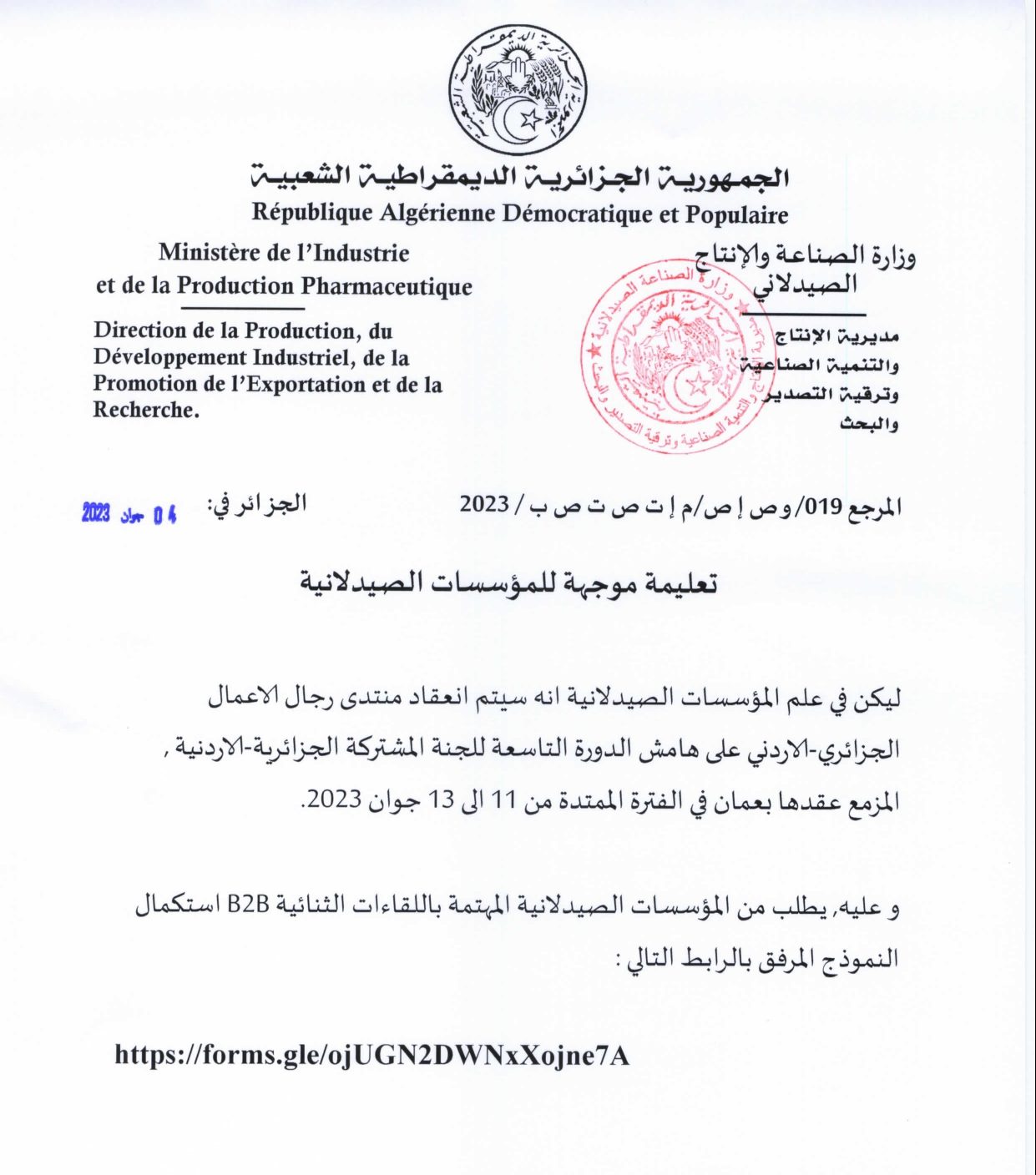 NOTE AUX OPÉRATEURS PHARMACEUTIQUES – Forum des hommes d’affaires Algéro-Jordanien