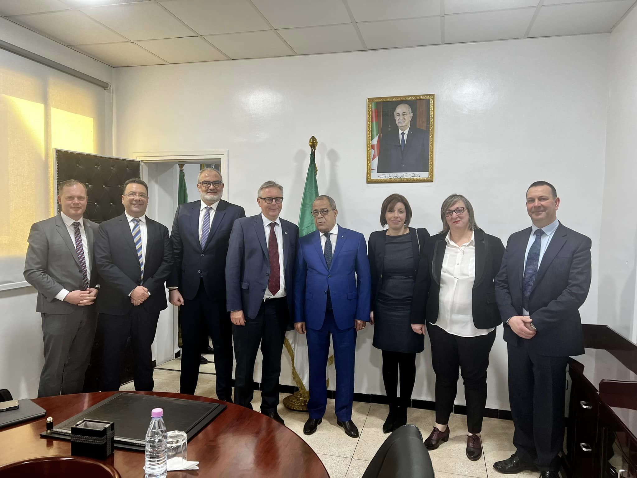 Le Ministre de l’Industrie Pharmaceutique Mr Ali Aoun, a reçu en audience  le 14 février 2023,  au siège du ministère, son excellence Monsieur Bjorn Haggmark, Ambassadeur du Royaume de Suède , accompagné d’une délégation des laboratoires Astra Zeneca conduite par le président de la région MENA Mr Scander Rami.