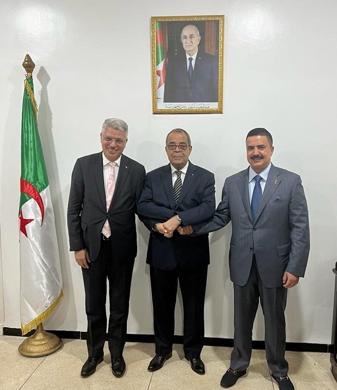 Le Ministre de l’Industrie Pharmaceutique Mr Ali Aoun a reçu en audience, ce dimanche 23 octobre 2022, au siège du Ministère, une délégation du Groupe  saoudien  AGLEN  &FRERES  conduite par le Vice-Président du Conseil d’Administration El cheikh Aglen Mohamed Abdelaziz Al-Aglen, accompagné de son Excellence Monsieur Mohamed Ali Boughazi, Ambassadeur d’Algérie au Royaume d’Arabie Saoudite, en présence des cadres du Ministère et des membres de la délégation saoudienne.