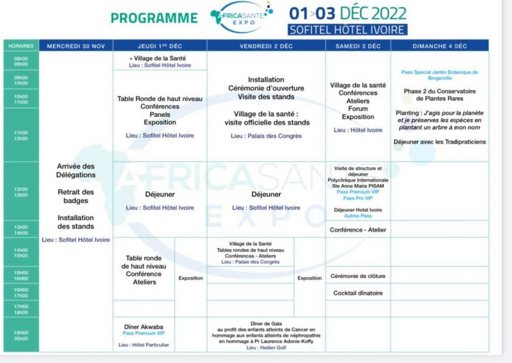 L’Algérie invité d’honneur du salon « AFRICA SANTE EXPO » qui se tiendra du 1er au 3 décembre 2022 au Sofitel Abidjan Hôtel Ivoire