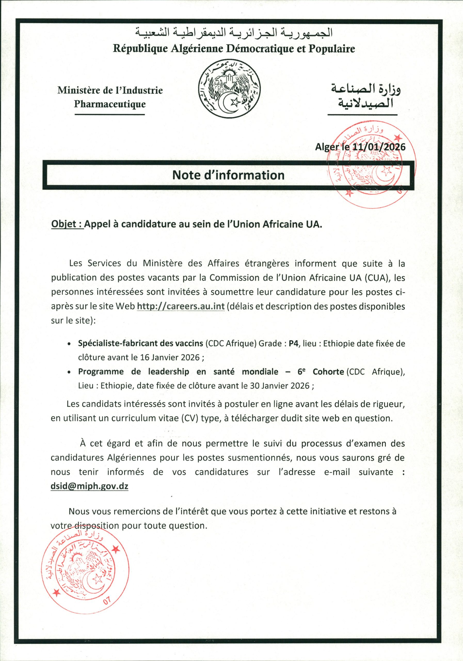 Au service du secteur de l'industrie pharmaceutique en Algérie