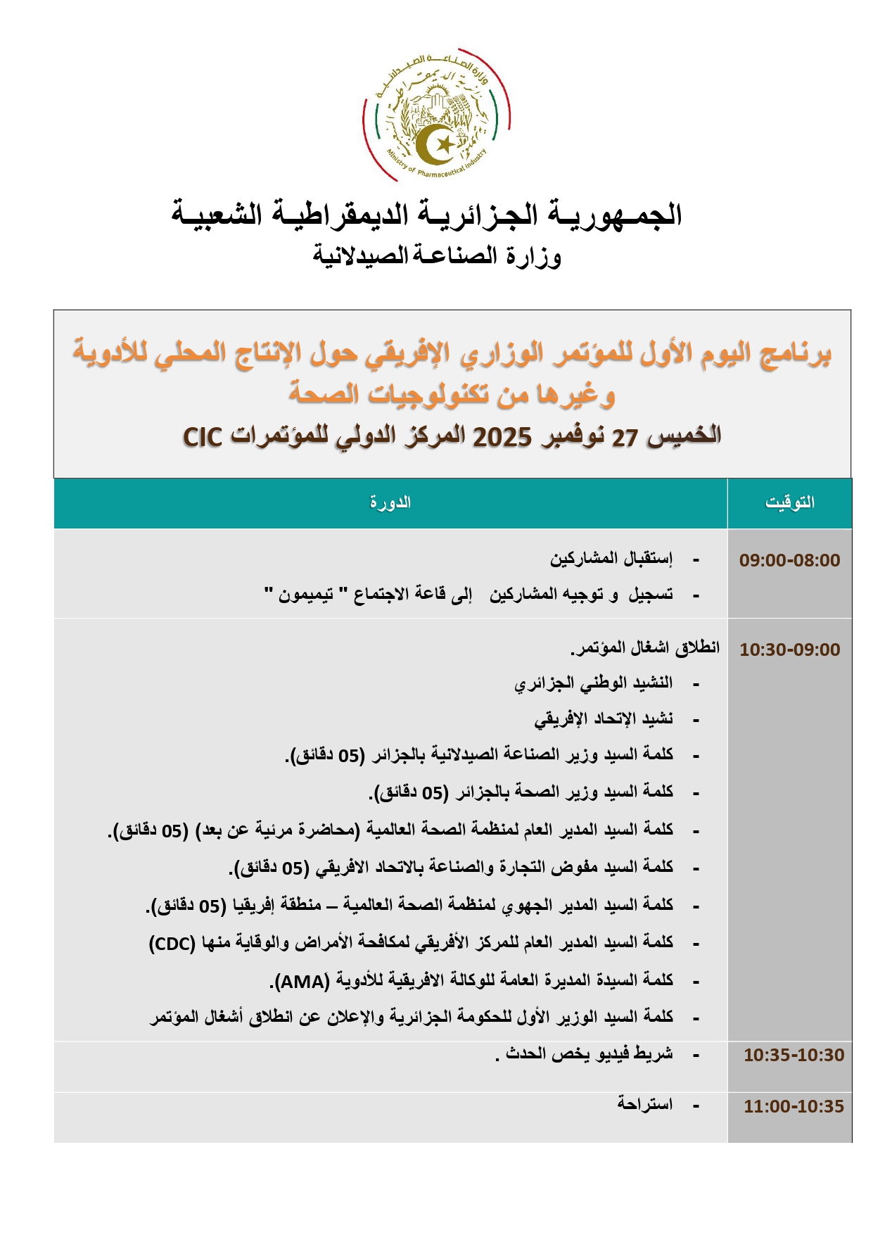 افتتاح أشغال الاجتماع الثالث للجنة الوطنية المكلفة بالتحضير للمؤتمر الوزاري الإفريقي للإنتاج المحلي للأدوية وغيرها من تكنولوجيات الصحة،