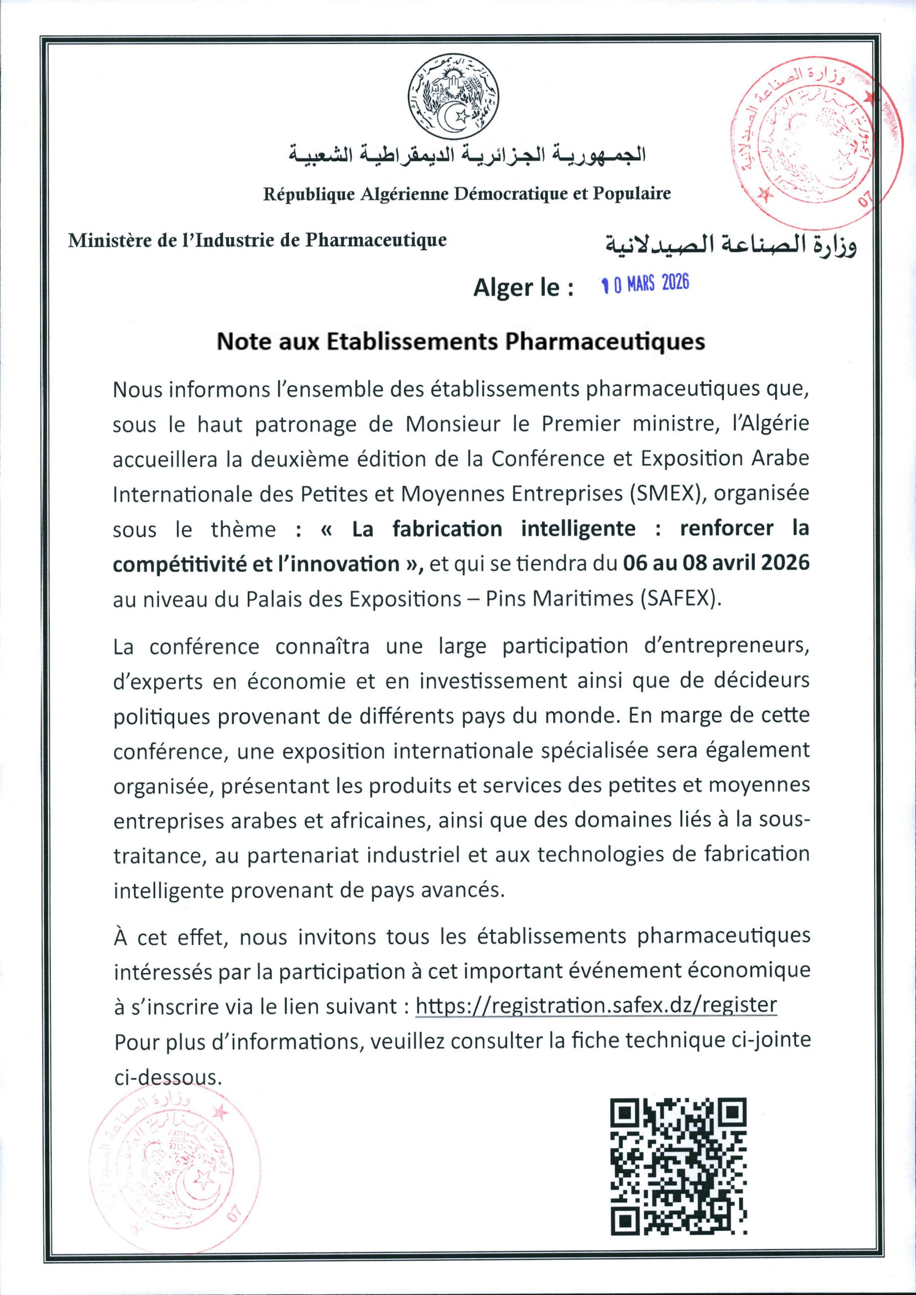 Email : Event@safex.dz / Smex2026@mcepe.gov.dz