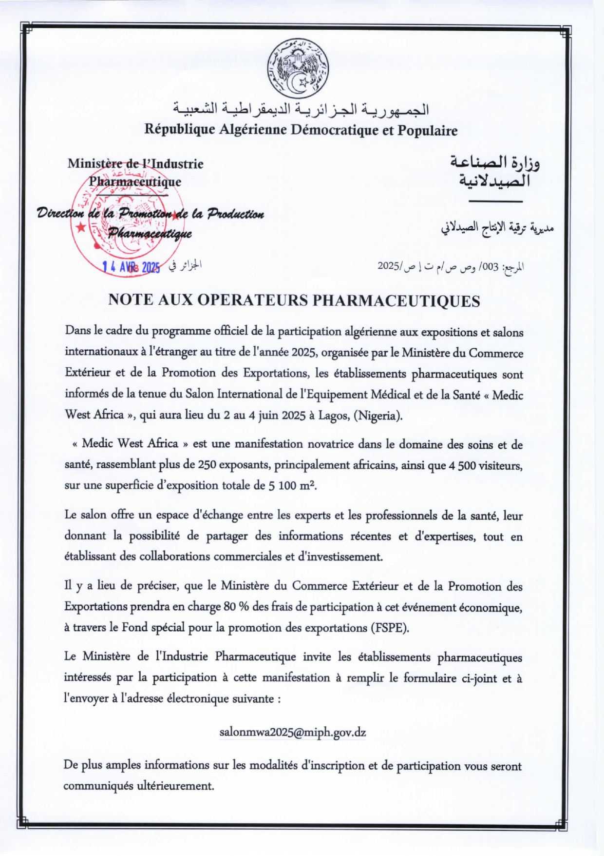 Email: salonmwa2025@miph.gov.dz