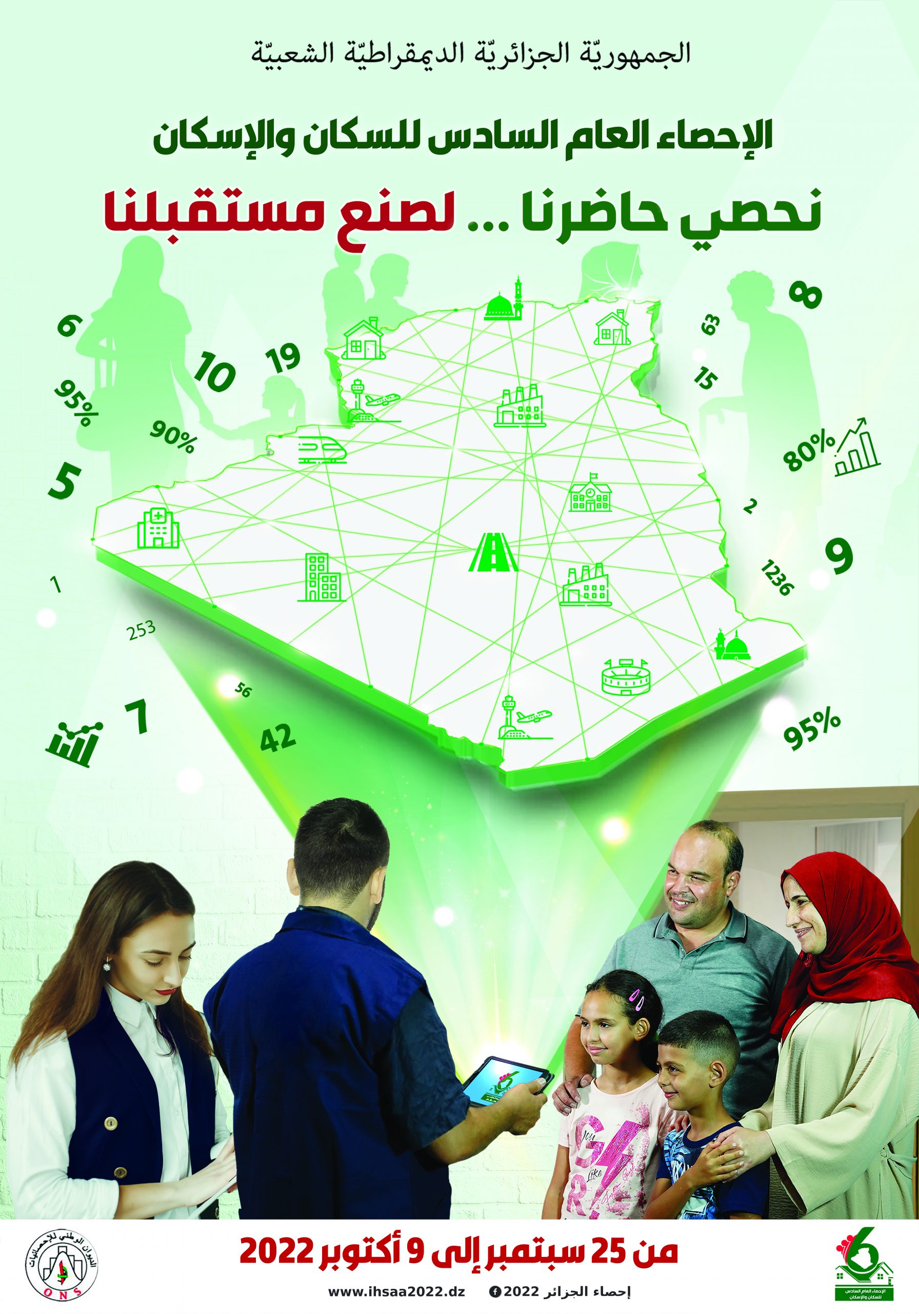 L’Algérie lance le sixième Recensement général de la population et de l’habitat (RGPH 2022)  du 25 septembre au 9 octobre 2022