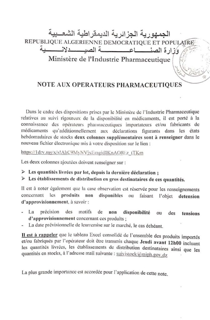 note aux établissements pharmaceutiques- Programme prévisionnels d’importation 2026